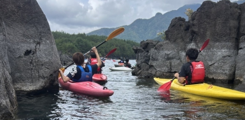 1年次の宿泊を伴う夏季野外活動は生涯スポーツ学科の必修科目です。豊かな自然環境のもとカヌーや登山などのアウトドアスポーツを体験することで環境に関心を持ち、グループ活動を通じてコミュニケーション能力や協調性、リーダーシップを高めます。その他の体験型演習授業においても、課題を解決するためにお互いに協力し合うので、学生の元気な声と明るい笑顔が絶えません。